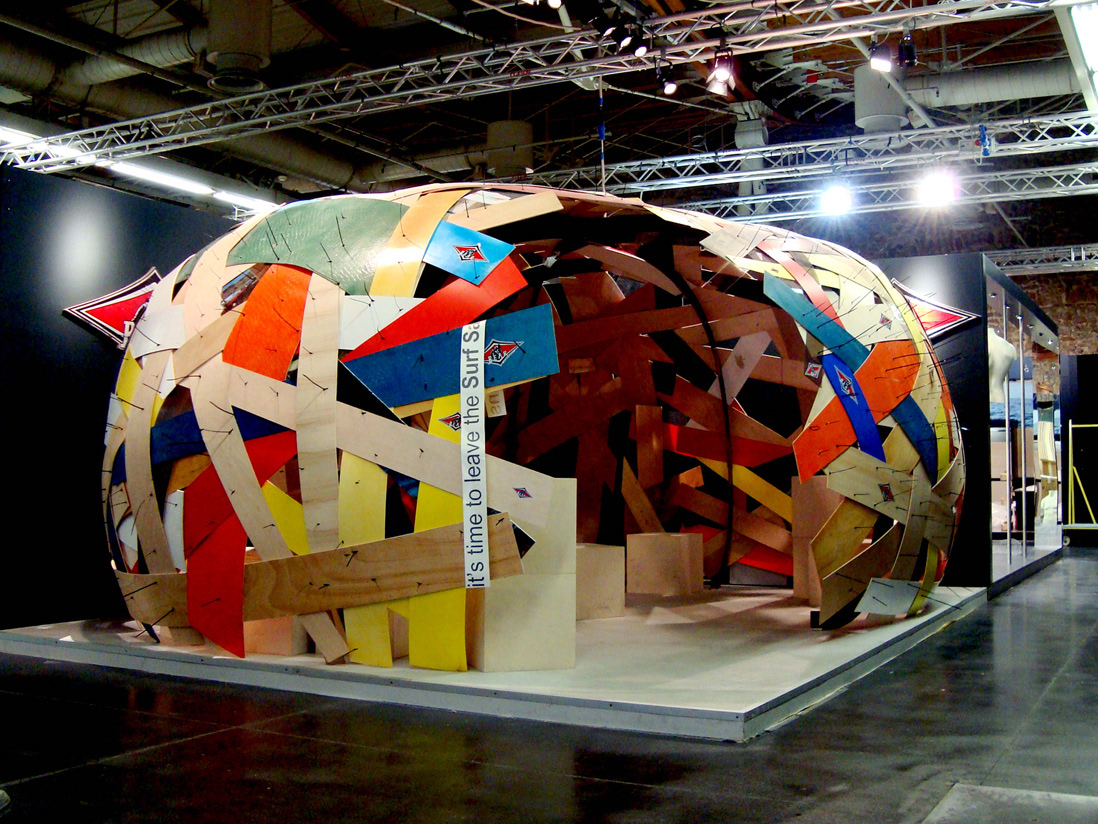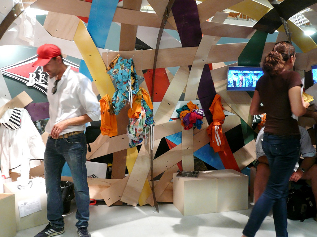 This is an exhibition stand realized for Wagner Associati -Treviso (Italy), for the in Florence fashion week "Pitti Uomo in 2009". Reclaimed wood forms the shell and gives the structure an idea of stranded.